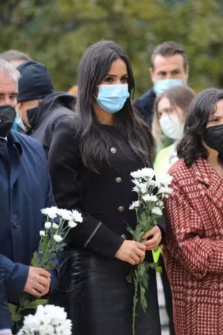 La vicealcaldesa de Madrid, Begoña Villacís, con un ramo de margaritas en el acto que organiza la Asociación Víctimas del Terrorismo (AVT), en el Bosque del Recuerdo del Parque de El Retiro, a 11 de marzo de 2022, en Madrid (España). El acto se celebra - Isabel Infantes - Europa Press