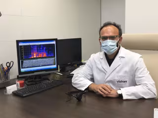 Dr. Julio Ampuero Fernández, director del Instituto de Comunicación, Habla y Lenguaje de Vithas Internacional utilizando un espectrograma - VITHAS MADRID
