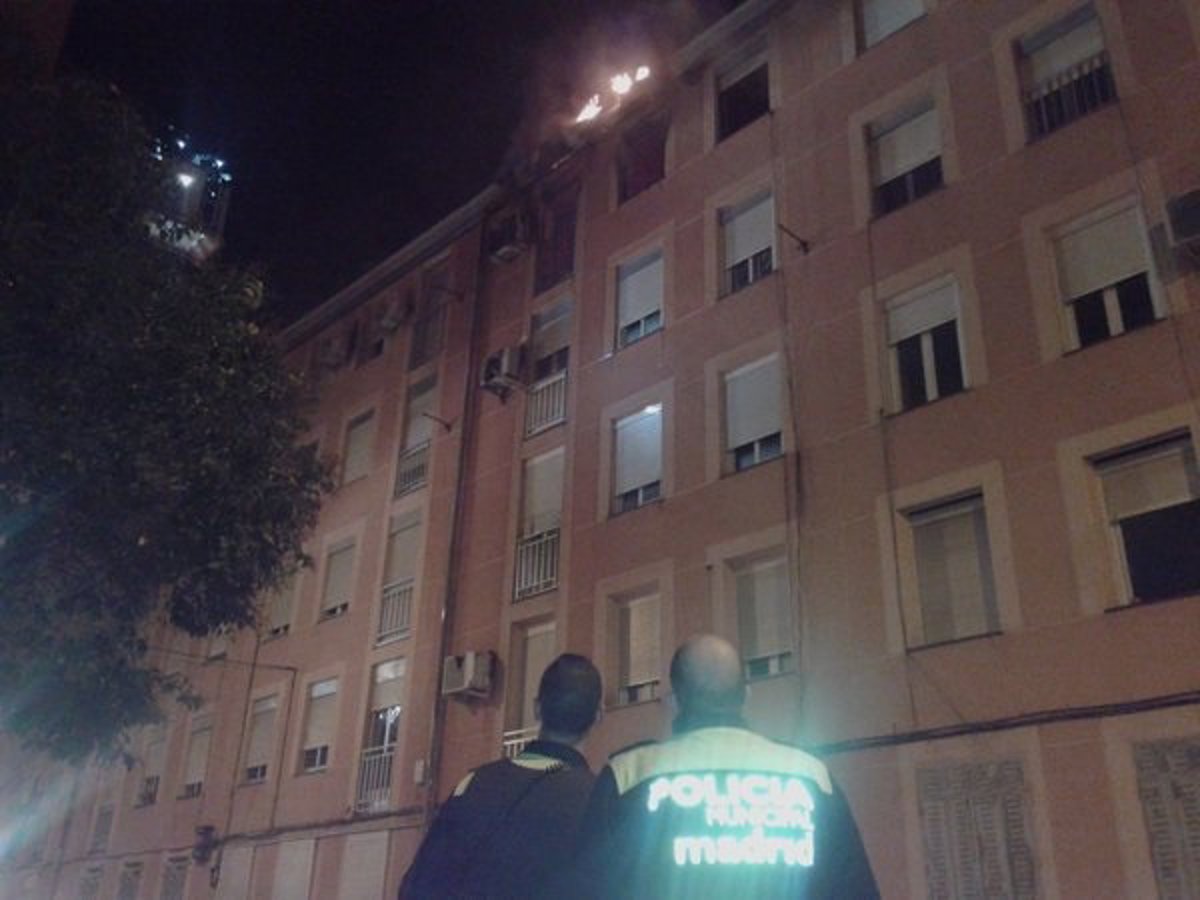 A continuación se presentaron cinco dotaciones de Bomberos del Ayuntamiento de Madrid, que tardaron unos 20 minutos en controlar el incendio, sofocando el fuego y evitando que se propagase a las viviendas adyacentes. Sin embargo, las llamas arrasaron el aislante de la cubierta, lo que les ha llevado a estar trabajando toda la noche en labores de refresco y levantando las placas de aislante, hasta el amanecer.