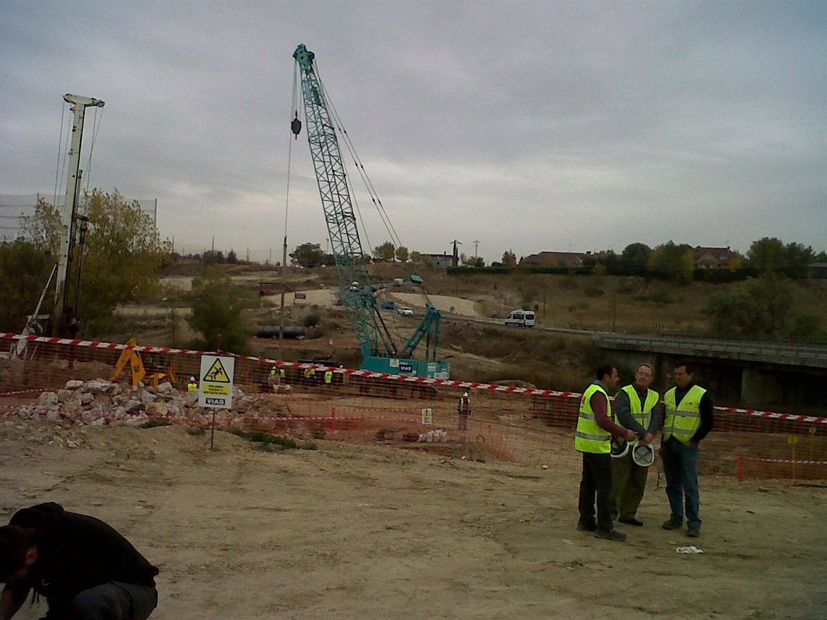 Durante su visita, Beteta y los alcaldes supervisaron la cimentación del terreno en el que se ubicará el nuevo viaducto para la colocación de los pilares que le servirán de apoyo, que se está realizando mediante el sistema denominado pilote de hormigón armado ejecutado 'in situ'.