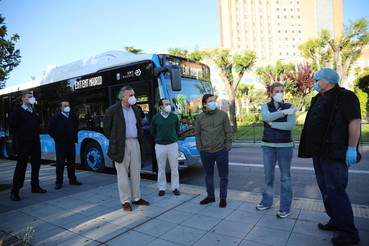 Almeida ha subrayado que los empleados de la EMT "llevan su vocación de servicio a Madrid más allá de sus obligaciones laborales para reforzar el apoyo que la ciudad y los ciudadanos están prestando donde más se necesita, cuidando especialmente a quienes nos cuidan".