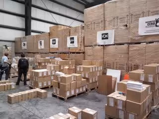 La delegada ha visitado a este grupo, formado por 70 personas y una flota de vehículos que actúan de forma organizada y trasladan desde esta nave de 2.500 metros cuadrados a las mesas electorales las papeletas, urnas, señalizadores y cabinas para la próxima cita electoral.