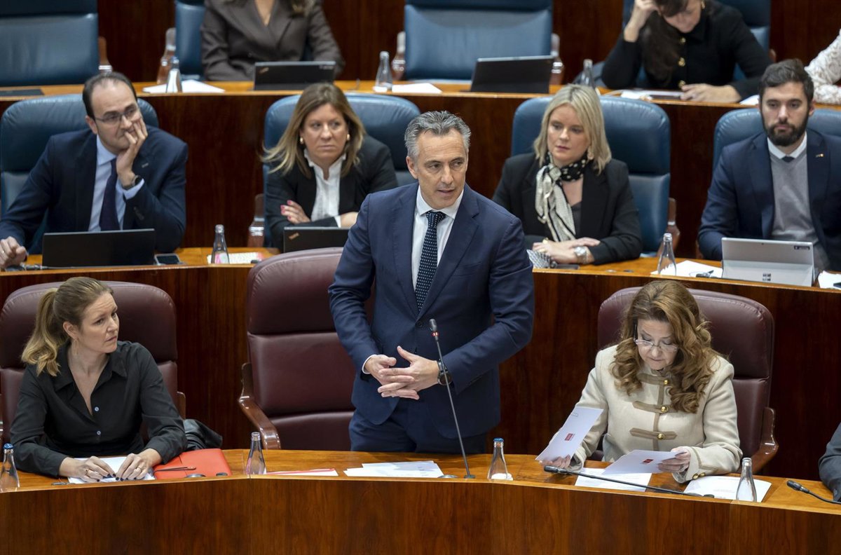 El Consejero de Medio Ambiente, Agricultura e Interior, Carlos Novillo, durante un pleno en la Asamblea de Madrid, a 5 de febrero de 2026, en Madrid (España). Ayuso, se reencuentra hoy con su oposición parlamentaria --Más Madrid, PSOE y Vox-- en el primer - Alberto Ortega - Europa Press