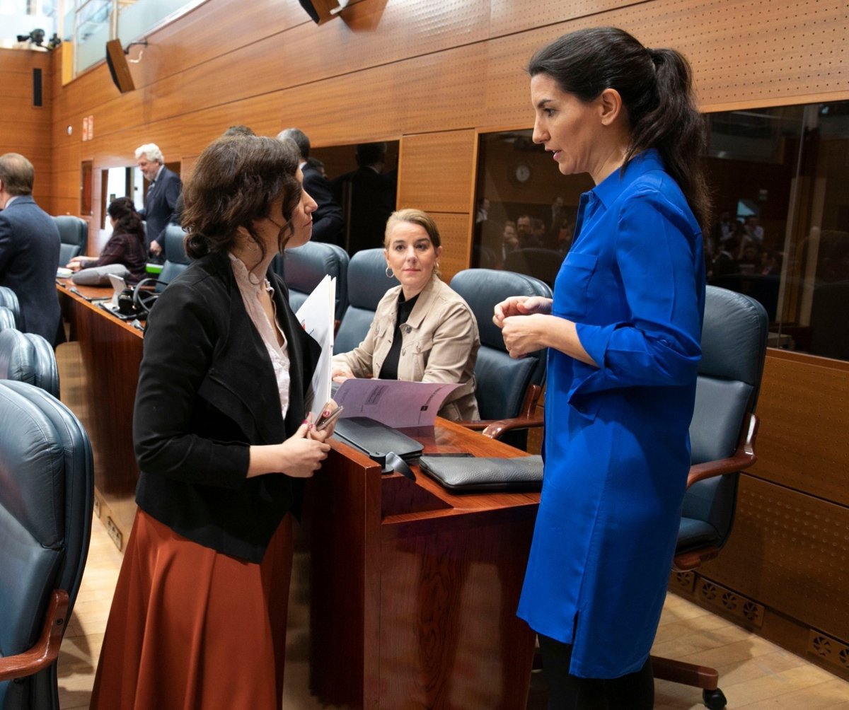 En la sesión de control del Pleno de la Asamblea de Madrid, Monasterio ha avisado de que en la autonomía todavía "no está la izquierda" pero si Ayuso renuncia "a defender las ideas fundamentales" y "tiene miedo a que le pongan etiquetan" al final "acabaran entrando".