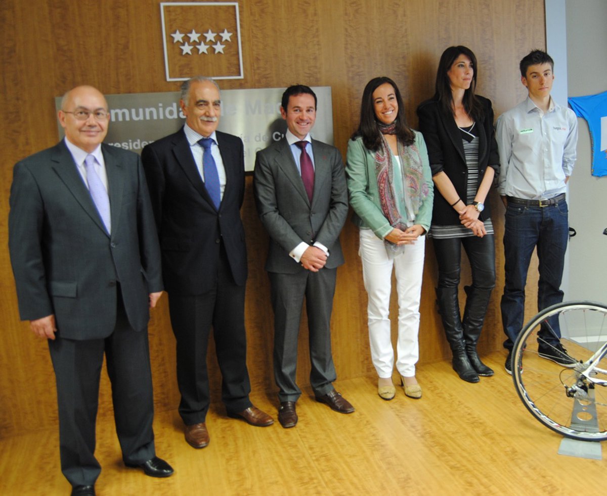 La directora general de Deportes de la Comunidad de Madrid, Carlota Castrejana, el presidente de la Federación Madrileña de Ciclismo y director de la Vuelta, Javier Fernández; la directora general de Deportes del Ayuntamiento de Madrid, Mercedes Coghen; y el ciclista profesional Carlos Verona (Burgos 2016) han presentado este miércoles la XXV Vuelta Ciclista Internacional a la Comunidad de Madrid.