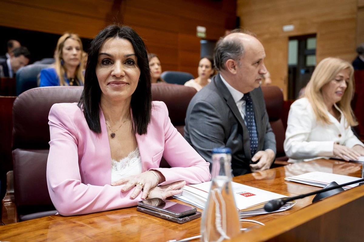 La consejera de Educación, Ciencia y Universidades de la Comunidad de Madrid, María Mercedes Zarzalejo (i), durante una sesión plenaria en la Asamblea de Madrid, a 12 de marzo de 2026, en Madrid (España). - A. Pérez Meca - Europa Press