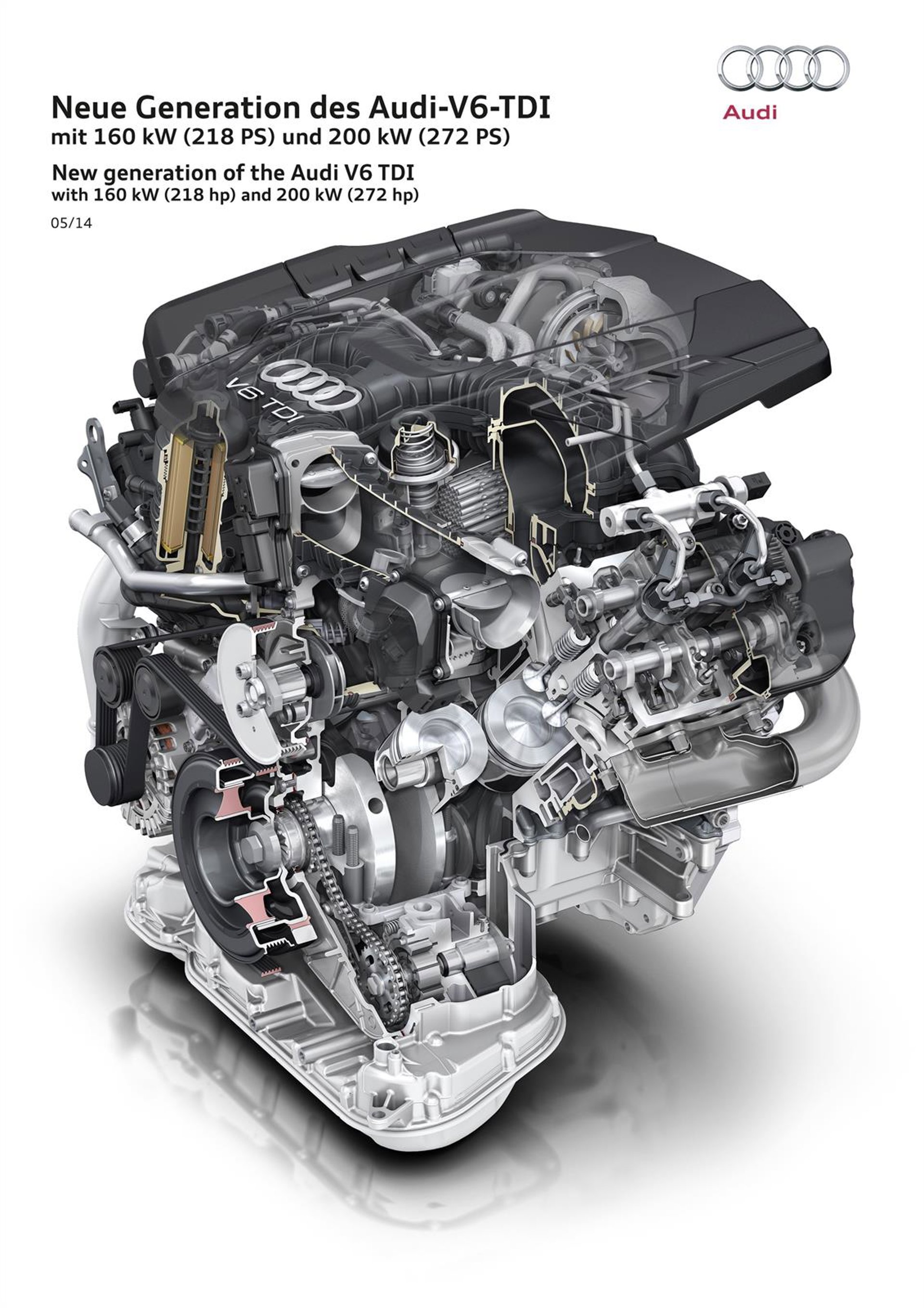 La marca automovilística alemana Audi ha desarrollado un nuevo motor clean diésel V6 de 3.0 litros que desarrolla potencias de 218 y 272 caballos y que cumple con la normativa europea sobre emisiones Euro 6, según informó la empresa en un comunicado.