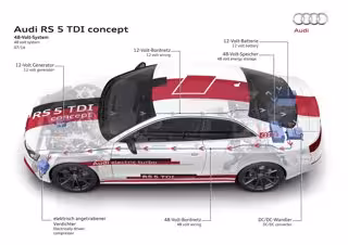 De esta forma, Audi desveló recientemente el sistema eléctrico de 48 voltios en los prototipos A6 TDI concept y RS 5 TDI concept, que montan un dispositivo de sobrealimentación mediante compresor eléctrico.
