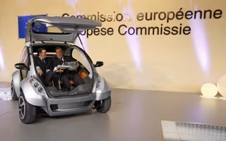 Barroso y Echave han subido juntos al prototipo del vehículo eléctrico durante la ceremonia del lanzamiento del primer prototipo en la explanada sita frente a la sede de la Comisión Europea entre gran expectación de representantes de la industria, cargos institucionales y medios.