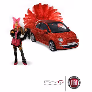 El Fiat 500 Drag está 'customizado' con plumas rosas y tela de lycra con lentejuelas, mientras que el Leather tiene tiras de cuero y tachuelas en el capó, y el Lesbo tiene una carrocería en color oro brillante, simulando una polvera y un gran pintalabios gigante.