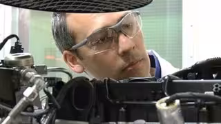 Los empleados de la planta de producción de Ford en Almussafes (Valencia) aprenden a identificar defectos utilizando una serie de motores defectuosos especialmente preparados que destacan el sonido que necesitan detectar.