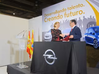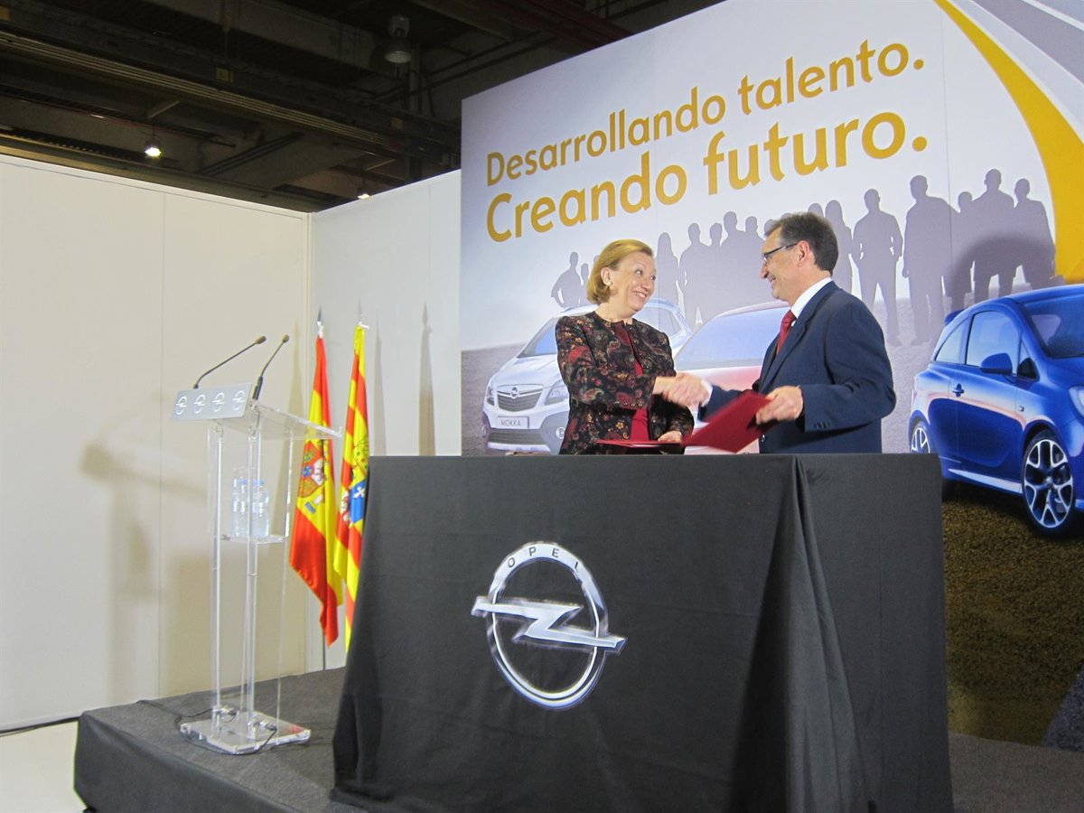 El convenio lo ha suscrito la presidenta del Gobierno de Aragón, Luisa Fernanda Rudi, y el director general de GM España, Antonio Cobo, en la planta de Opel en Figueruelas (Zaragoza).