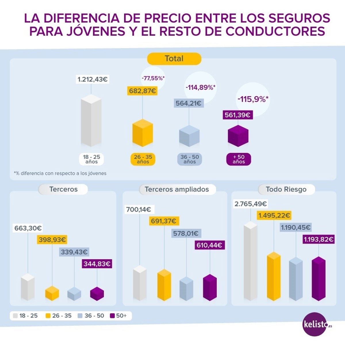 Los conductores de entre 18 y 25 años pagaron una media de 1.212 euros por el seguro de su coche durante el año pasado, lo que supone una media de 609 euros superior al resto de asegurados, según un estudio de la web Kelisto.es.