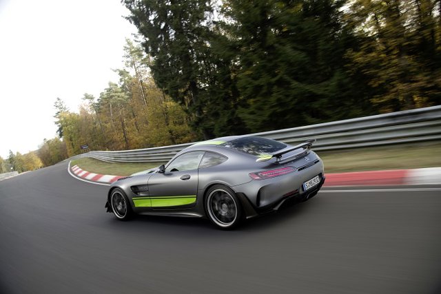 De su lado, el AMG GT R PRO, con 585 caballos de potencia, incluye un paquete de fibra de carbono (de serie) con 'splitter' frontal, aletas en los guardabarros, listones de adorno en los faldones laterales y difusor de fibra de carbono visible en acabado de alta calidad subraya su cercanía al mundo de la competición, al igual que el techo de fibra de carbono de nuevo diseño, rebajado en la parte central.