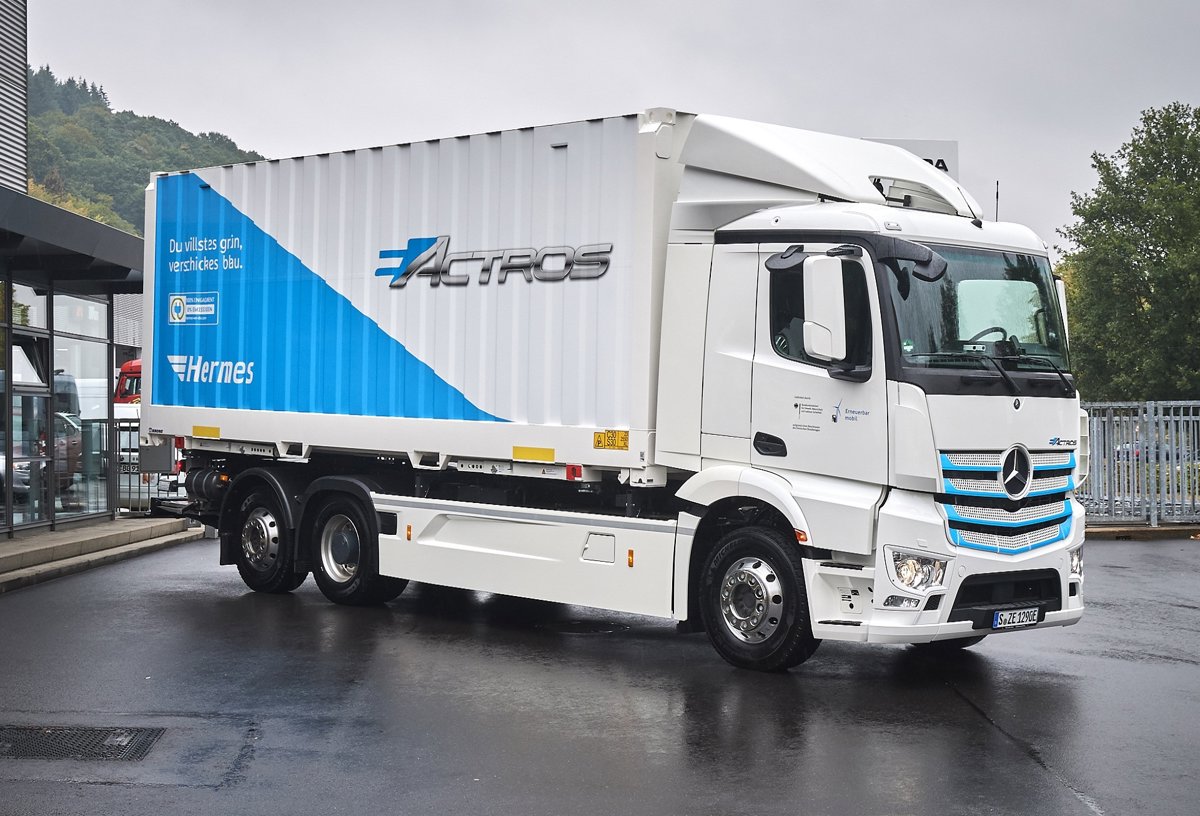 Hermes ha sido la primera empresa en recibir uno de los nuevos camiones, concretamente la versión de 25 toneladas --existe otra de 18--. Durante las pruebas, el eActros realizará una ruta de 50 kilómetros entre seis y ocho veces al día, por lo que será necesario una carga diaria, ya que la batería de este modelo tiene una duración de 200 kilómetros.