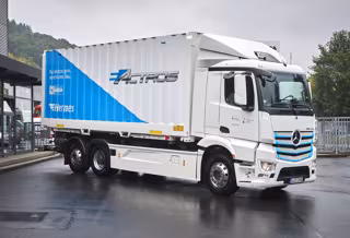 El modelo eléctrico del Actros se basa en el de su versión diesel, pero adaptando y optimizando varios componentes. Cuenta con baterías de ion-litio de 240 kWh que se pueden recargar en dos horas, con una toma de corriente de 150 kW y en 12 con una de 20 kW.