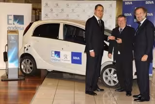 El acto de entrega de esta primera unidad tuvo lugar en Madrid y a él asistieron el director general adjunto de Peugeot España, Antonio González, el director de Recursos y Medios de BBVA, Gerard Bergé, y el director general de Endesa Energía, Javier Uriarte.