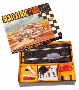 Este juego se presentó en España en 1962, durante la Feria Internacional de Muestras de Barcelona, cinco años después de su creación por parte del británico Fred Francis. La única forma de iniciar la comercialización del Scalextric en España en aquella época fue la fabricación en territorio nacional del producto.