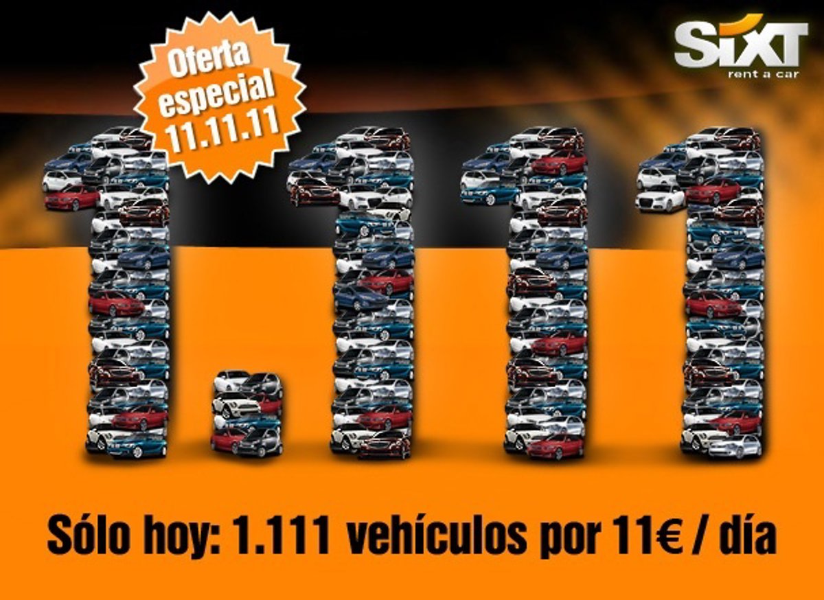 La empresa de alquiler de vehículos Sixt ofrecerá 1.111 vehículos en diferentes países de Europa y en Florida (Estados Unidos) a un precio de 11 euros al día, con el fin de conmemorar la fecha especial de mañana (11.11.2011), informó la compañía en un comunicado.