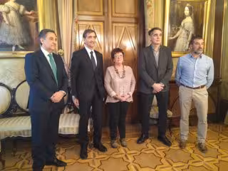 Sáenz ha acudido este jueves al Palacio de Navarra para firmar un convenio de colaboración con la consejera de Presidencia, Función Pública, Interior y Justicia del Gobierno foral, María José Beaumont, sobre el Parque Polo.