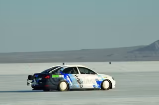 Un Volkswagen Jetta Hybrid con preparación especial ha conseguido alcanzar una velocidad punta superior a los 300 kilómetros por hora, durante unas pruebas realizadas en las salinas del antiguo lago Monneville, en Utah (Estados Unidos).