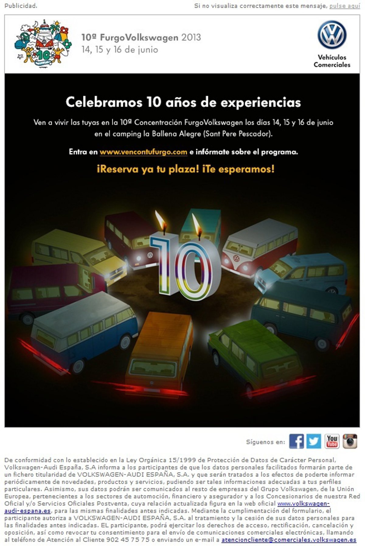 Volkswagen Vehículos Comerciales ha abierto el período de inscripción para la concentración FurgoVolkswagen, que celebra en 2013 su décimo aniversario, informó la empresa, que pretende lograr un récord de participación.