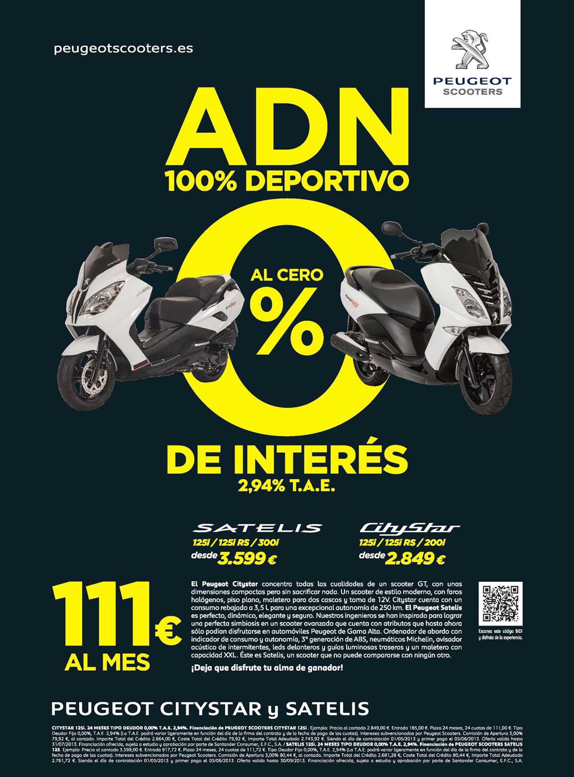 Con motivo del lanzamiento de la versión RS, la firma ofrece descuentos de entre 230 y 400 euros a los clientes que decidan adquirir algún modelo de la gama Citystar o Satelis, con una financiación al 0% de interés.