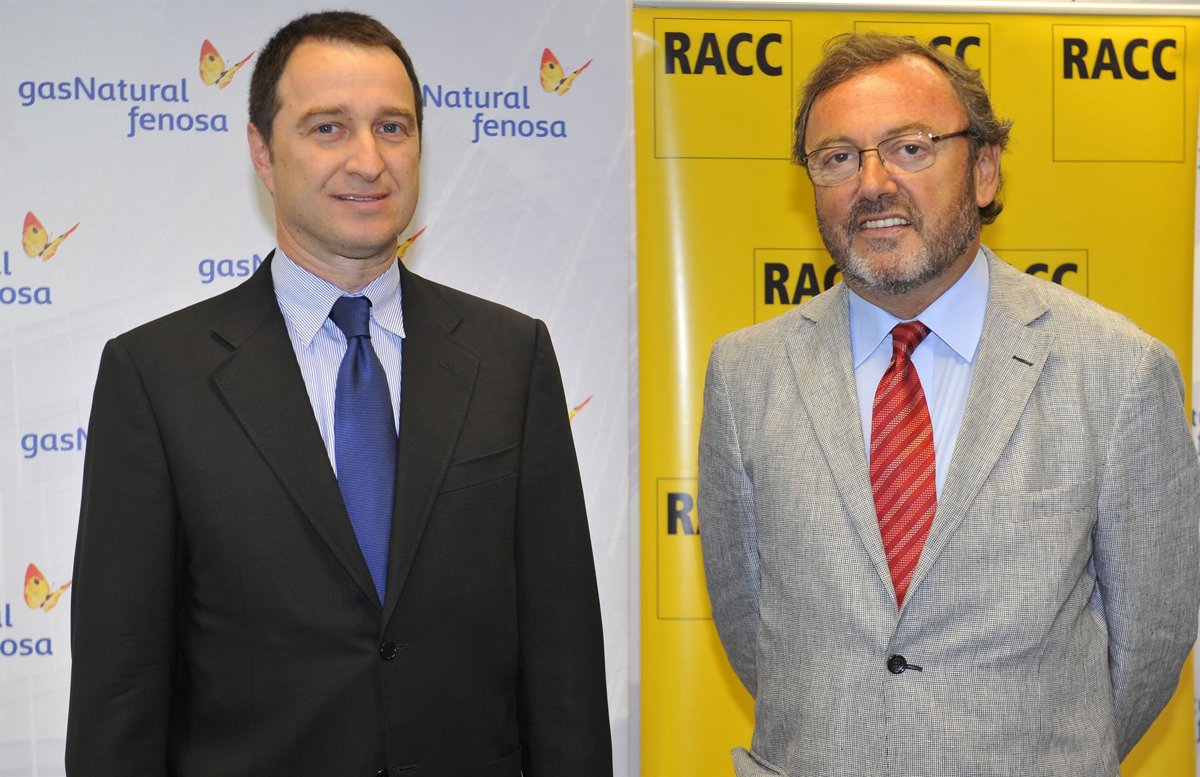 El director general de Negocios Minoristas de Energía de Gas Natural Fenosa, Josep Moragas, y el director general del Racc, Josep Mateu, han firmado un acuerdo para impulsar el uso del coche eléctrico y potenciar el gas natural como combustible para flotas de vehículos en España.