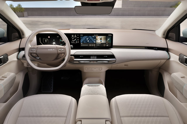 Basado en la filosofía de diseño 'Opposites United' de Kia, que combina líneas nítidas con detalles técnicos atrevidos, el EV4 se fusiona con la tecnología. Así,cuenta con un monitor panorámico de 30 pulgadas y pantallas de 12,3 pulgadas, 5,3 y 12,3 pulgadas.