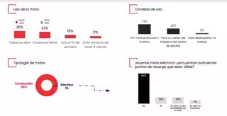 En cuanto al carril bus para motos, más de ocho de cada diez tienen una opinión favorable. Sin embargo, la falta de aparcamiento es uno de los aspectos que más quejas genera, puesto que el 58% de los encuestados afirma que no puede aparcar en plazas exclusivas para motos, ya sea porque no existen cerca de su destino o porque, cuando llega, ya están todas ocupadas.