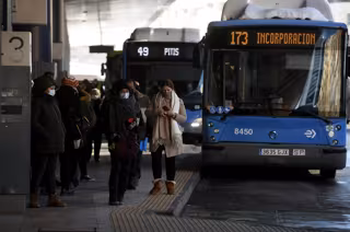 Colas de gente esperando el autobús en Madrid. - Óscar Cañas - Europa Press