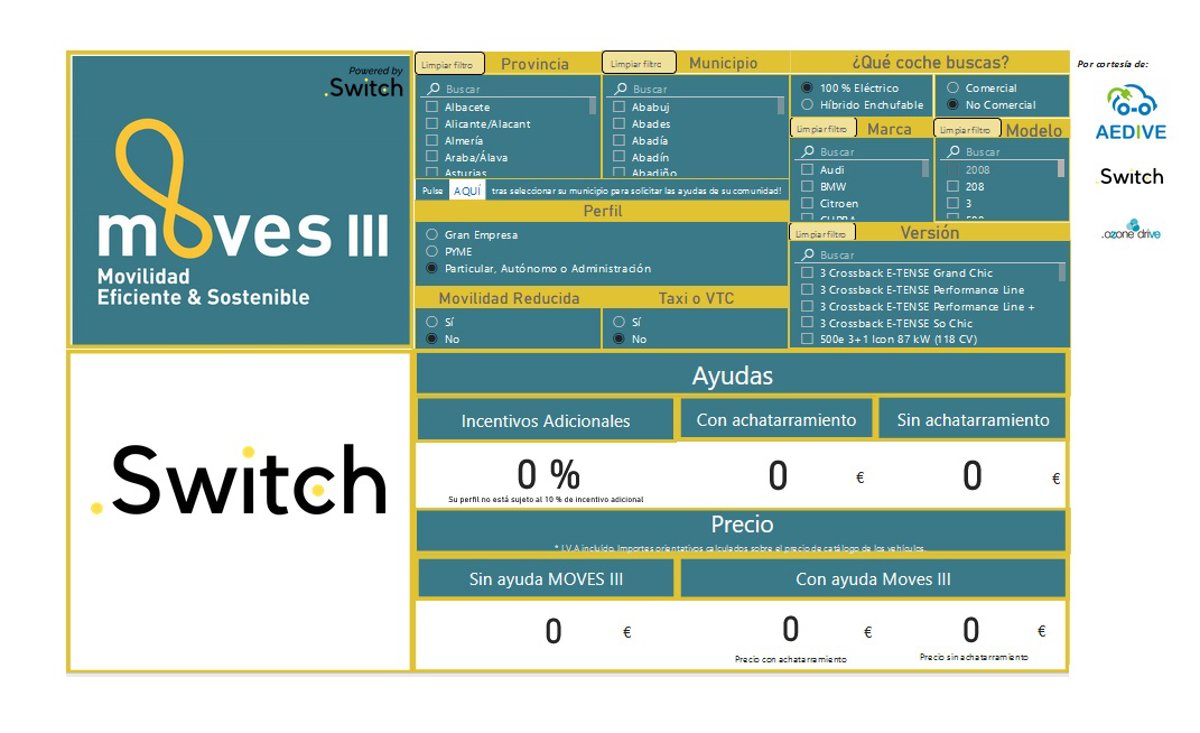 El objetivo de esta herramienta es proporcionar a los colectivos susceptibles de optar a las ayudas del Moves III los descuentos aplicables a cada vehículo turismo y comercial ligero, sin tener por ello que escudriñar la información en el BOE sobre las cuantías en las bonificaciones y conocer de forma rápida cómo se aplican a cada modelo de vehículo en las categorías mencionadas.
