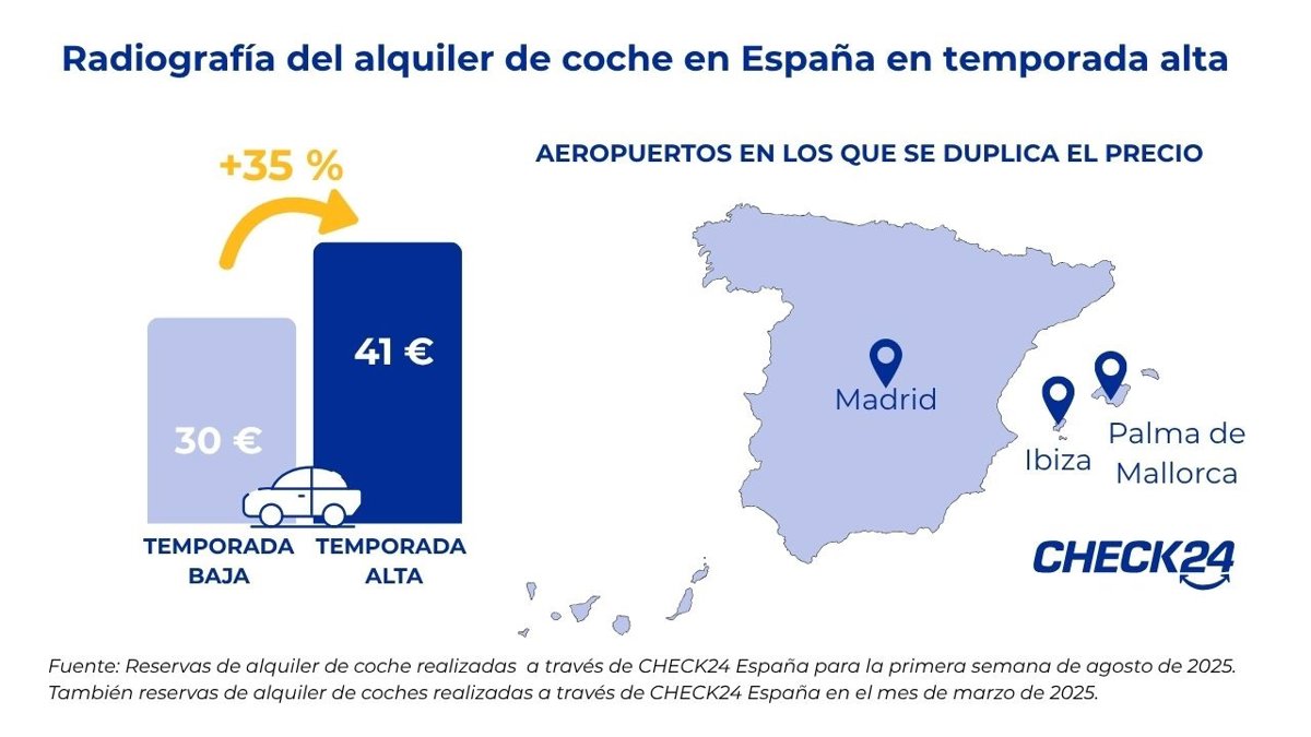 Además, el comparador resalta que son "muchas las localizaciones en las que el precio de alquilar un coche en temporada alta llega a duplicarse".