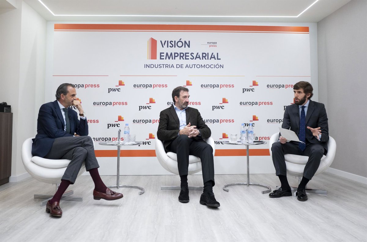 (I-D) El socio responsable de Automoción de PwC, Manuel Díaz, el director general Anfac, José López-Tafall, y el jefe de sección de Empresas y Motor en Europa Press, Carlos Drake , durante el segundo encuentro PwC Visión Empresarial - Europa Press. - Alberto Ortega - Europa Press