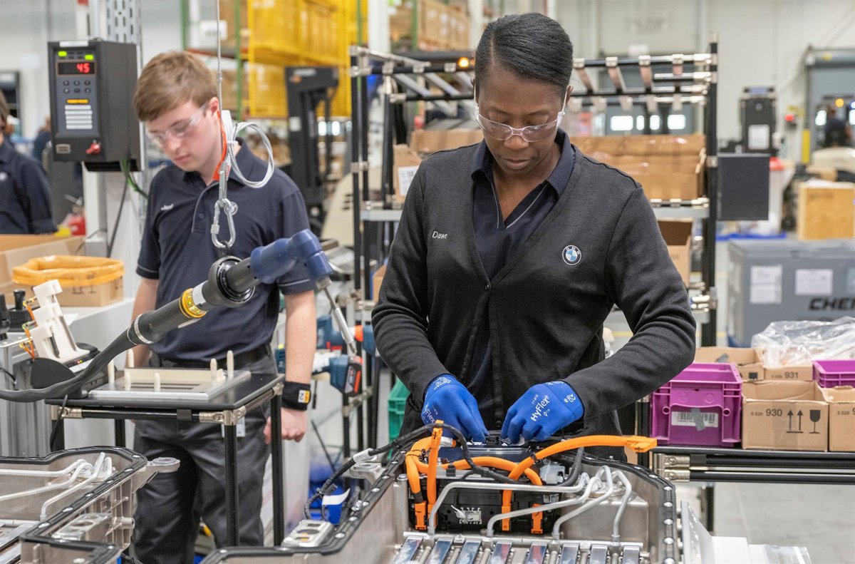 Imagen de un trabajador produciendo baterías para un vehículo. - BMW - Archivo