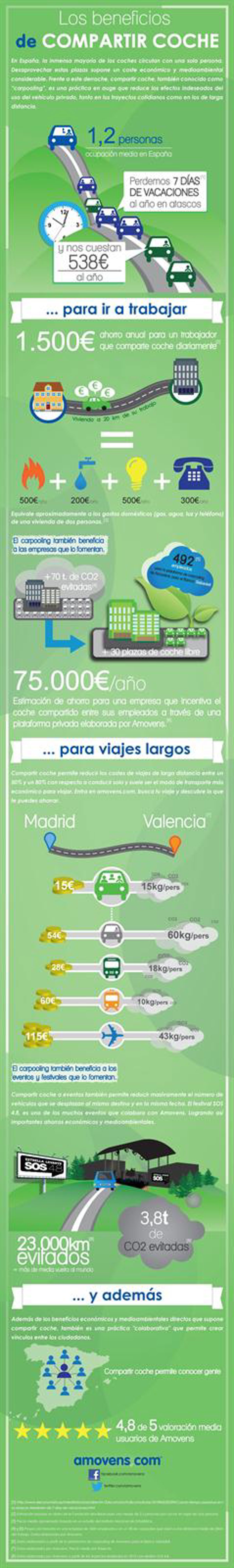 La web también revela que una empresa con mil empleados en la que el 5% de la plantilla compartiera coche, con una distancia media de 20 kilómetros, generaría un ahorro anual de 75.000 euros y evitaría la emisión de 70 toneladas de CO2.