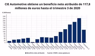 Todo ello en el día en el que CIE Automotive anunció un beneficio neto de 117,8 millones de euros en los primeros nueve meses de este año, lo que supone una caída del 47% en comparación con los 224,2 millones de euros que ganó en el mismo periodo de 2019.