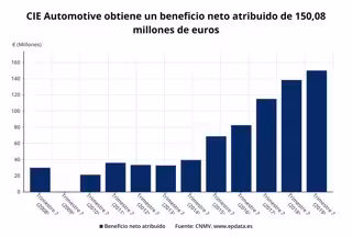 CIE Automotive obtuvo un beneficio neto atribuido de 150 millones de euros en el primer semestre, un 14% más que en el mismo periodo del año anterior.