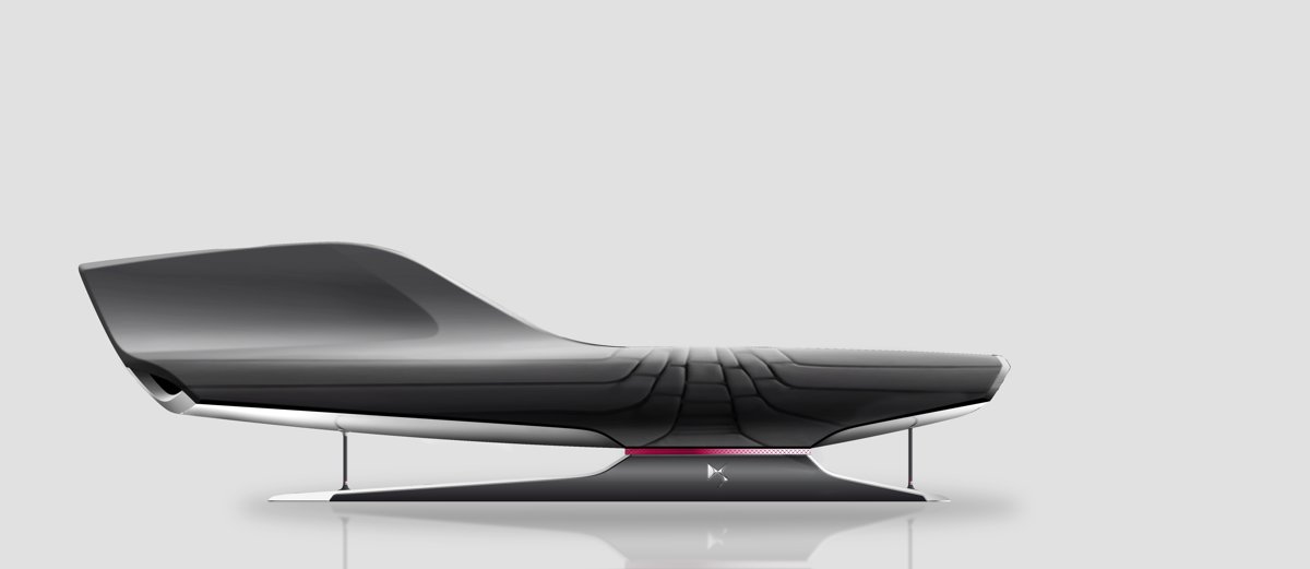 Los diseñadores de Citroën proponen un sofá flotante, en el que destacan las líneas con movimiento, y que se apoya sobre una base que rinde homenaje a la obra de los diseñadores Ray y Charles Earnes. El respaldo tiene forma de aleta de tiburón y el sofá está tapizado en cuero "bracelet", una confección inaugurada en el DS4 y que firma todos los modelos de la línea distintiva de Citroën.