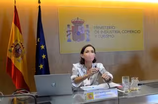 La ministria de Industria, Comercio y Turismo, Reyes Maroto, durante la reunión interministerial para el PERTE del vehículo eléctrico y conectado que se ha constituido este viernes. - MINISTERIO DE INDUSTRIA, COMERCIO Y TURISMO