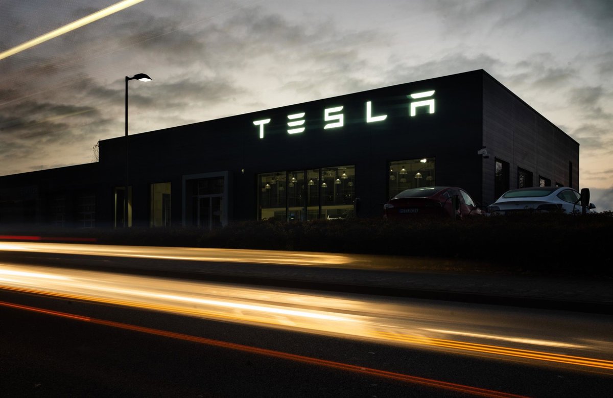 Archivo - 12 November 2021, Lower Saxony, Hanover: Cars drive past a dealership of the electric car manufacturer Tesla. Tesla's stock has gained about 50 per cent since the beginning of the year. Tesla is now worth more than a trillion dollars on the st - Julian Stratenschulte/dpa - Archivo
