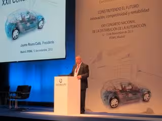 El presidente de Faconauto afirmó que desde 2007 se han perdido el 19% de los puntos de venta y manifestó la importancia del sector de la distribución en España, que representa aproximadamente el 2,5% del PIB, por lo que pidió respeto por parte de las marcas fabricantes y de las administraciones públicas.