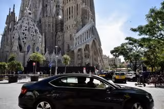 Un vehículo VTC en el entorno de la Sagrada Familia de Barcelona, en una zona en la que también hay paradas de taxis. - EUROPA PRESS-DAVID OLLER