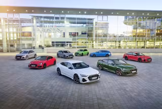 En la actualidad, la familia Audi RS se compone de 14 modelos firmados por Audi Sport, que representan la mayor expresión de cada gama en términos de prestaciones y dinamismo: el RS 3 Sportback y Sedan, el RS 4 Avant, el RS 5 en versiones Coupé y Sportback, el RS 6 Avant, el RS 7 Sportback, el TT RS en versiones Coupé y Roadster, los RS Q3 y RS Q3 Sportback, el RS Q8 y los superdeportivos Audi R8 Coupé y Audi R8 Spyder.
