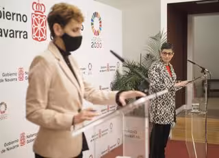 La presidenta de Navarra, María Chivite, y la ministra de Asuntos Exteriores, Arancha Gonzlález Laya. - EDUARDO SANZ/EUROPA PRESS