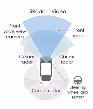 El Sensing 360 ha conseguido una detección de 360 grados al añadir un total de cinco unidades de radar de ondas milimétricas en el frontal y en cada esquina del vehículo, además de la cámara monocular que utiliza el Sensing actual.