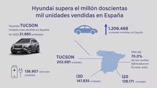 En un comunicado, la marca detalla que al Tucson, que en 2022 se convirtió en el modelo más vendido en el mercado español con 21.985 unidades, le siguen el i30, con 147.167 unidades comercializadas desde su lanzamiento y cerrando el podio está el i20, con 127.320 automóviles.