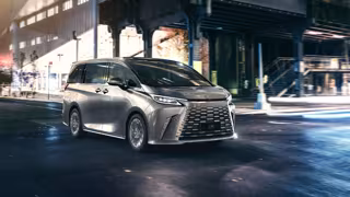 En la parte delantera, una gran sección inferior de la parrilla se encuentra debajo de una abertura delgada bajo el borde delantero del capó, uniendo los faros y generando la forma del cuerpo del eje de Lexus. Las líneas fluidas del LM se acentúan con los pilares delanteros y traseros oscurecidos, mientras que la gran área de vidrio alrededor genera una sensación de apertura.