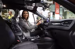 La ministra de Industria, Comercio y Turismo, Reyes Maroto, en un automóvil nuevo de Ford, durante su visita a las instalaciones de la fábrica de Ford en Almussafes, a 24 de octubre de 2022, en Almussafes, Valencia, Comunidad Valenciana (España). L - Rober Solsona - Europa Press