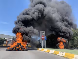 Los trabajadores han empezado a quemar neumáticos ante las puertas de las instalaciones de la empresa, han lanzado petardos y han cortado la Ronda Litoral de Barcelona a la altura de la Zona Franca, en ambos sentidos, hasta las 11.45 horas, cuando ha finalizado la protesta.
